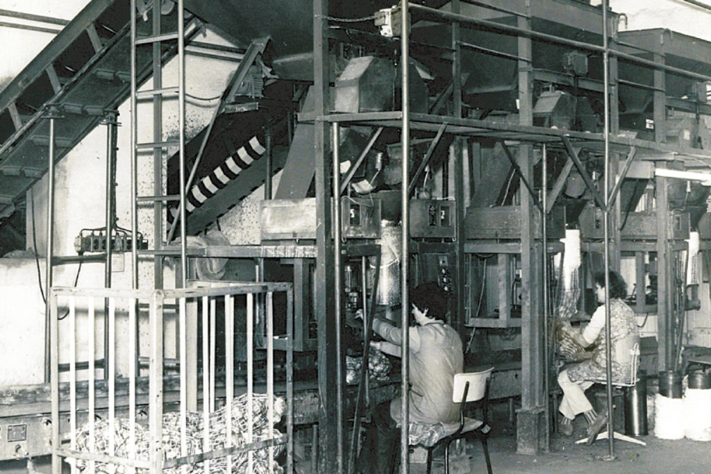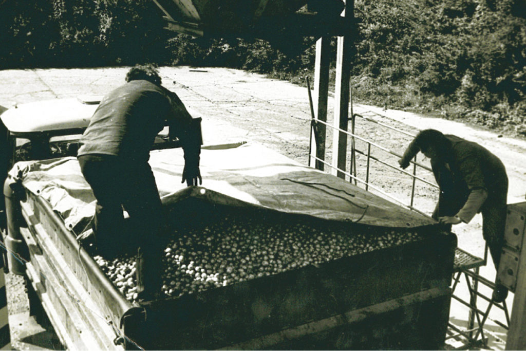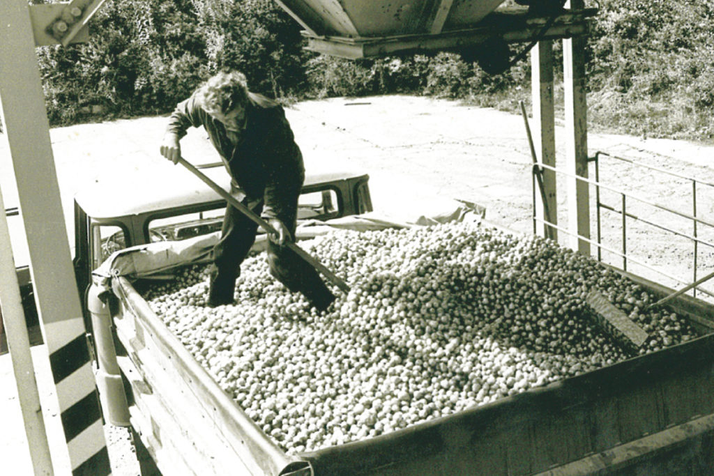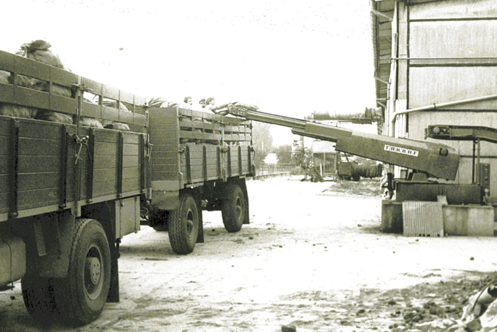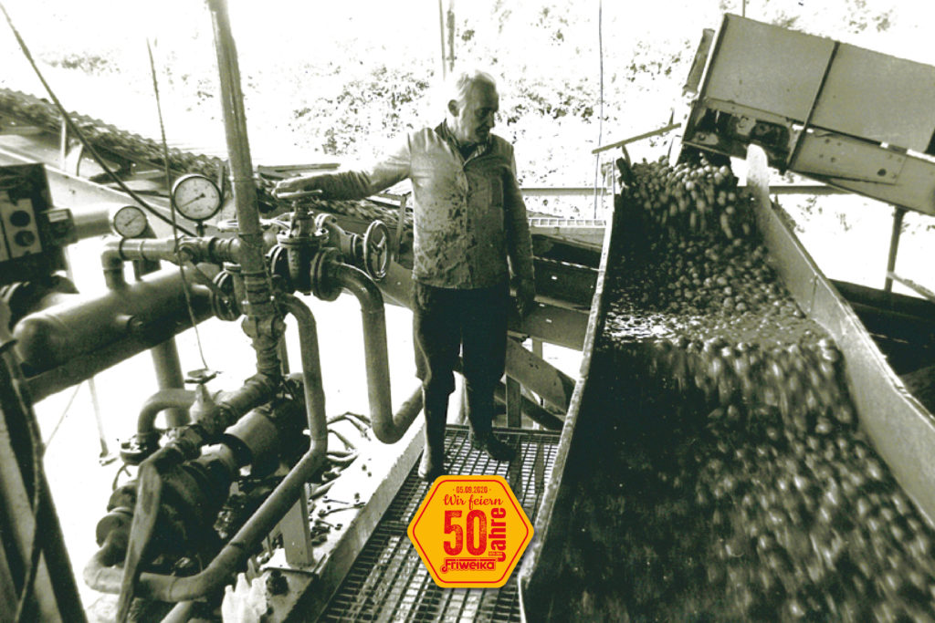 Mitte der 80er Jahre wurde Abpackstrecke für Kartoffeln gebaut. Eine halb automatische Absackanlage verpackte die Kartoffeln in 50 kg Säcke mit direkt Verladung auf das Fahrzeug. Nach Verbesserung der Maschine konnten auch 5 kg Säcke automatisch in die Rollbehälter geschlichtet werden. Das war eine enorme Arbeitserleichterung für unsere Mitarbeiterinnen. Denn sie haben während einer Schicht 15 Tonnen der 5 kg Säcke eingestapelt.