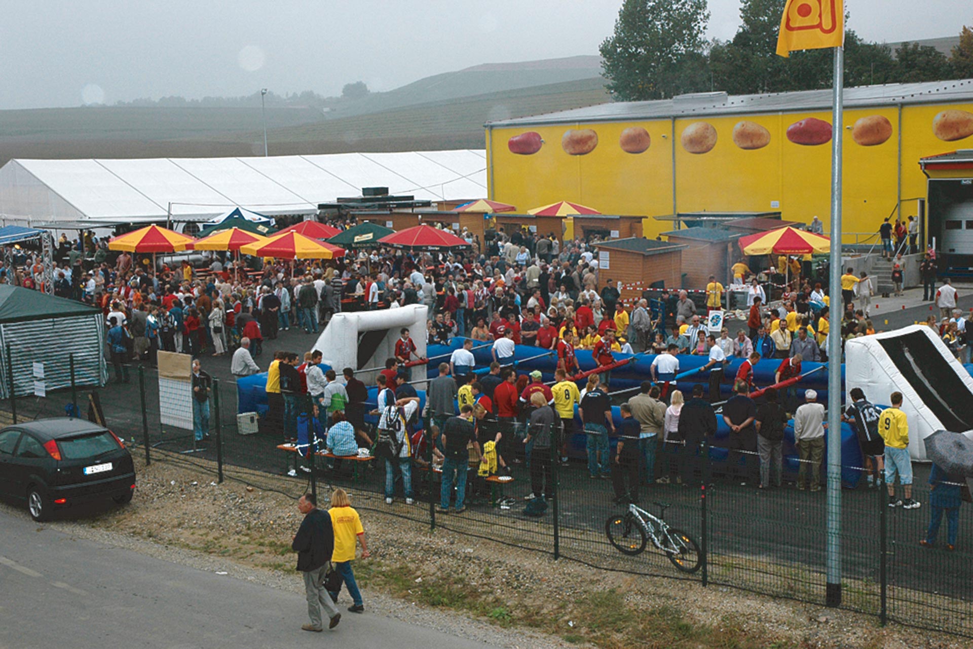 Mit einem betriebsumfassenden Investitionspaket von 17 Millionen Euro konnte zwischen 2003 und 2005 in vielen Unternehmensbereichen die Kapazität erhöht werden. Unser Ziel war es dabei, die dauerhaft ausgelasteten Produktionskapazitäten nicht nur zu entlasten, sondern noch zu steigern. Hier nur eins unserer ambitionierten Ziele: eine Steigerung der Menge an abgepackten Frischkartoffeln von 40.000 auf 70.000 Tonnen im Jahr!