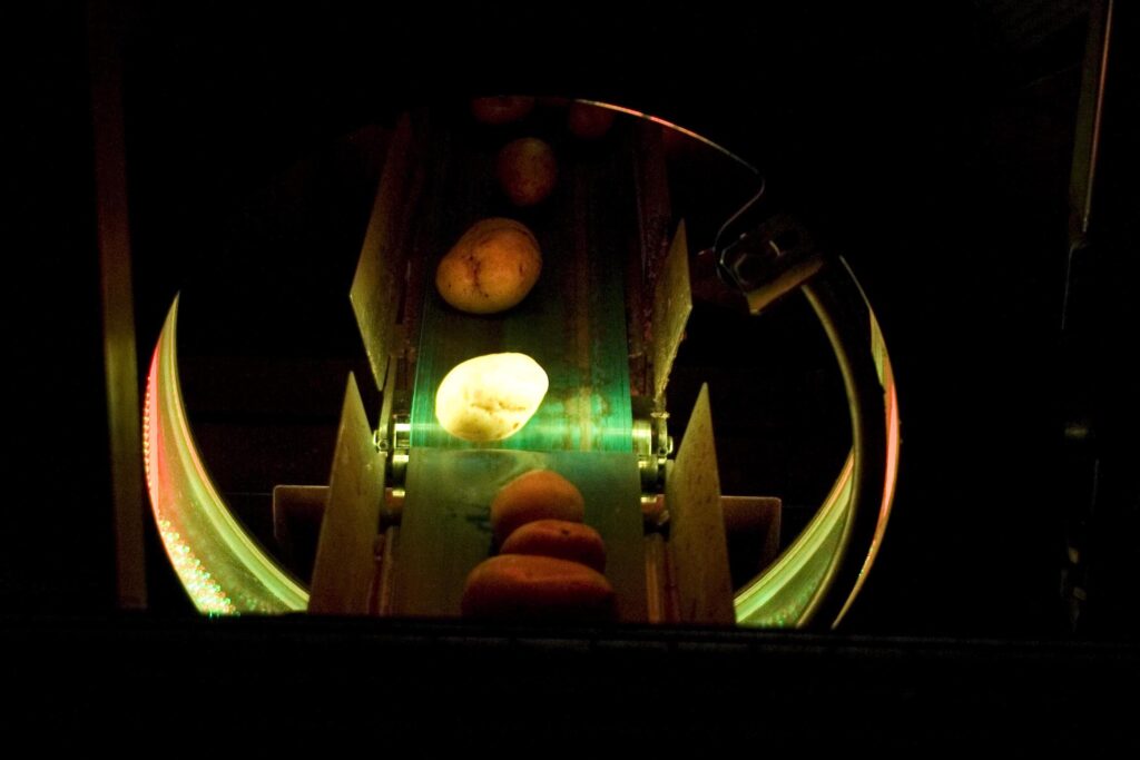Die Investierung in die optoelektronische Sortieranlage hat sich gelohnt. Diese Anlage kann die Kartoffeln mithilfe eines sensorgestützten, optischen Sortierverfahrens in kürzester Zeit nach Form, Größe und Zustand sortieren. Dadurch kann ressourcenschonender gearbeitet und eine gleichbleibende Qualität bei gleichzeitiger Abfallreduzierung gewährleistet werden.