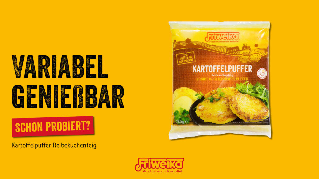 Tüte aufschneiden, die frische Reibemasse portionieren und direkt in eine beschichtete Pfanne mit heißem Fett geben. Anschließend beide Seiten goldbraun bis knusprig braten und heiß servieren.