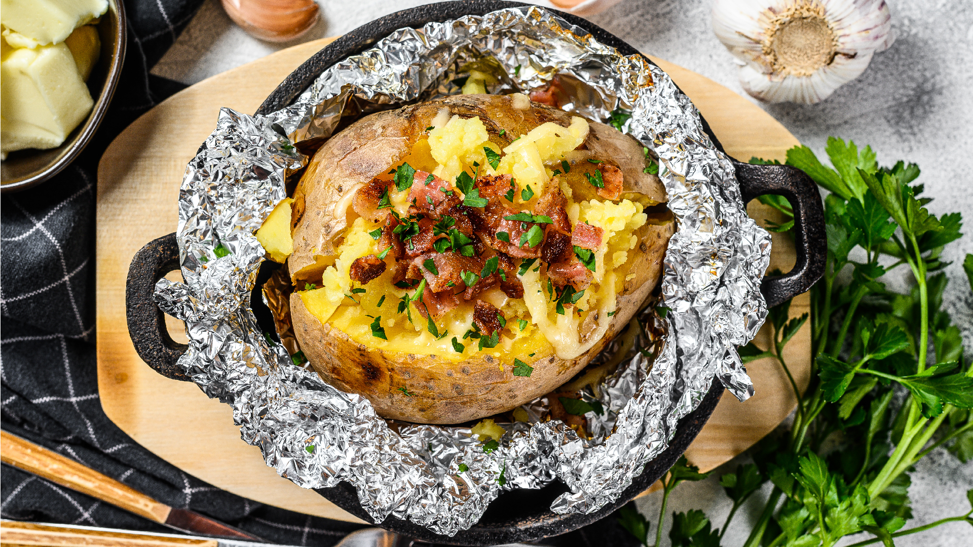 𝐓𝐢𝐩𝐩: Die warme Folienkartoffel harmoniert hervorragend mit einer Portion frischem Crème fraîche.
