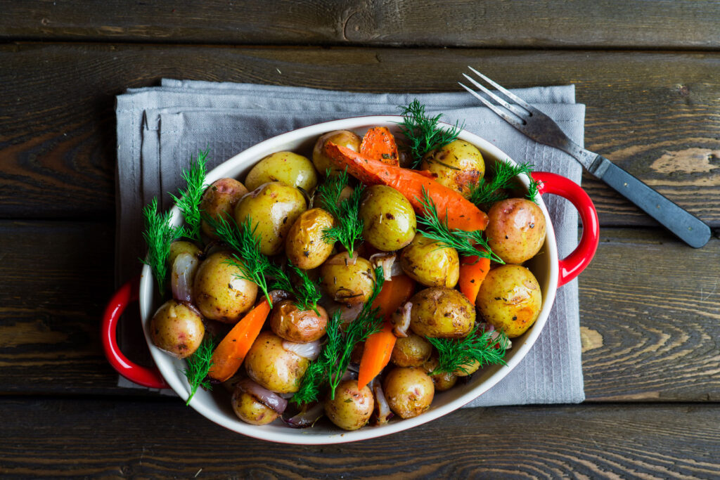 - Kartoffeln waschen, in Spalten schneiden und in eine Schüssel geben (bei kleinen, ganz lassen).