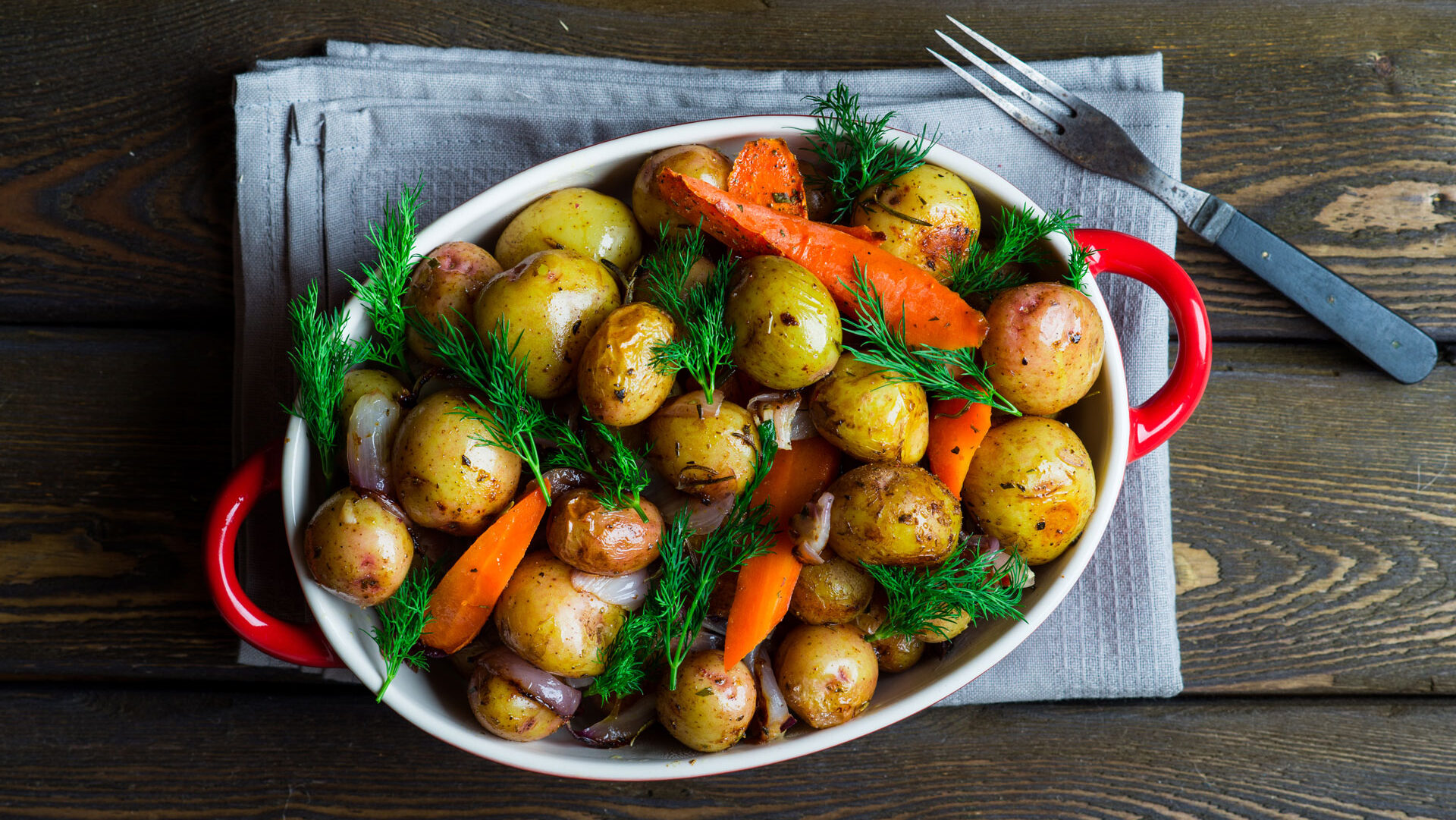 - Kartoffeln waschen, in Spalten schneiden und in eine Schüssel geben (bei kleinen, ganz lassen).