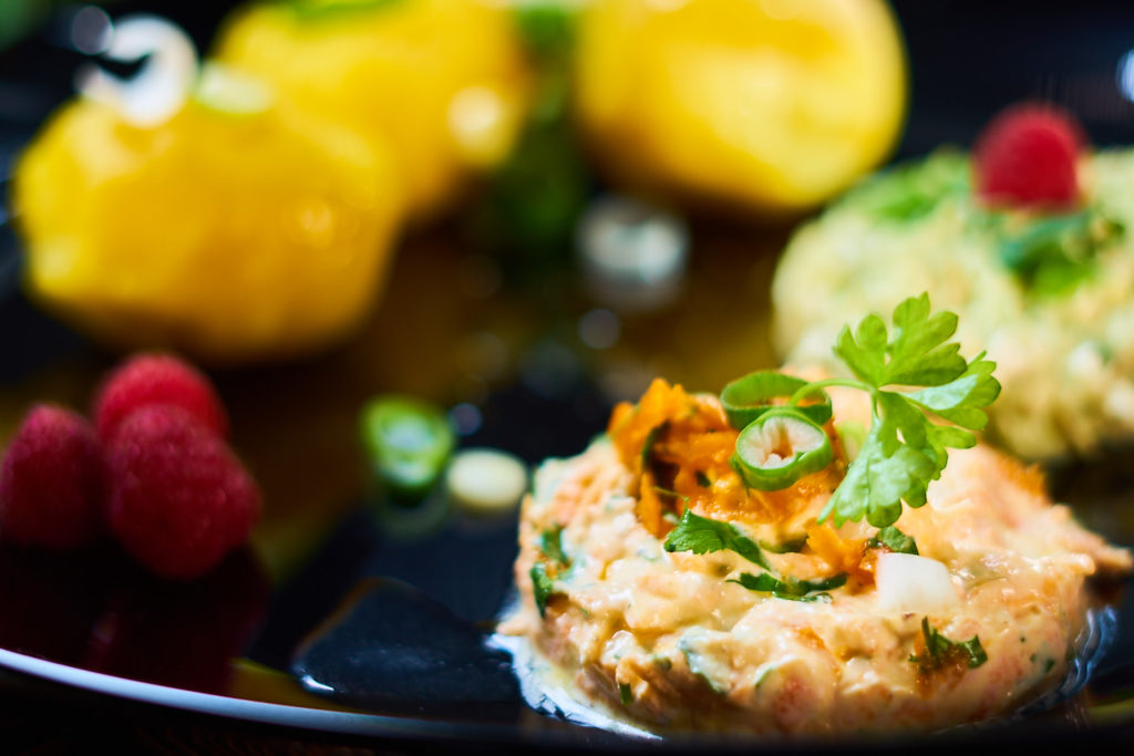• Für den Möhren-Koriander-Quark Möhre schälen und raspeln. Korianderblättchen abzupfen, bis auf einige Blättchen fein hacken. Quark, 2 TL Sesamöl und Mineralwasser gut verrühren, 2/3 der Möhrenraspel und den gehackten Koriander untermischen. Mit Salz, Pfeffer und 1 Prise Zucker würzen. Mit übrigen Möhren und Koriandergrün bestreuen, übriges Öl darüber träufeln.