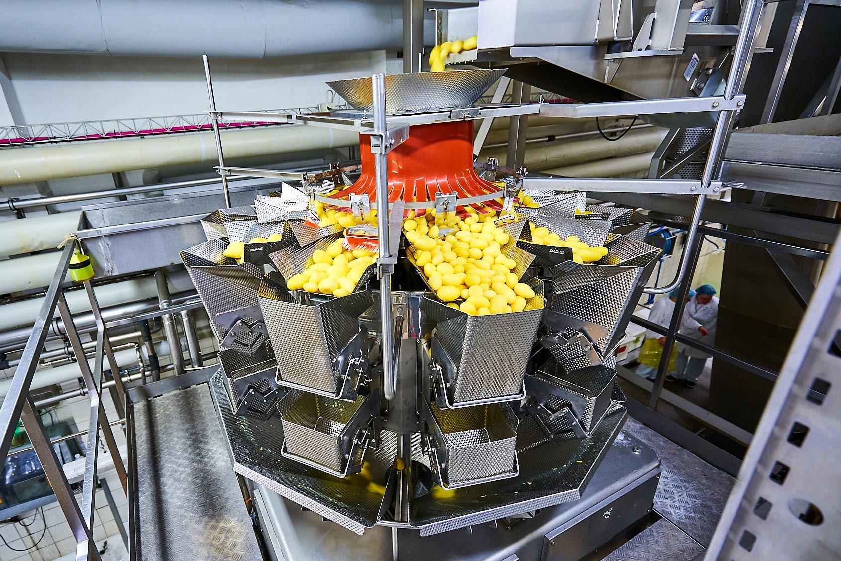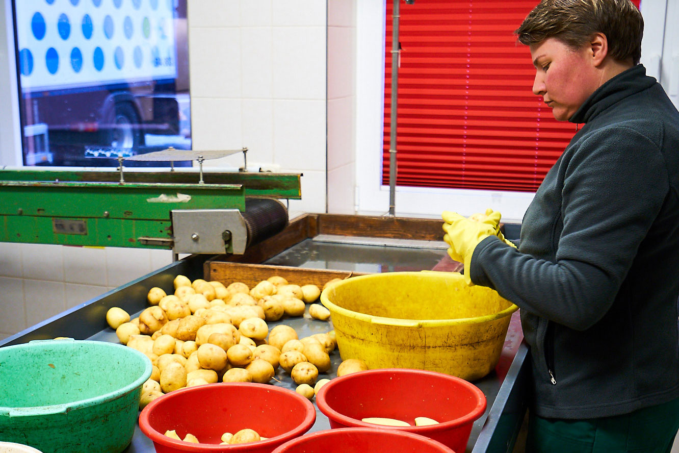 Um unsere hohen Anforderungen an Qualität und Frische einhalten zu können, werden mit Hilfe modernster Sortiersysteme die guten und weniger guten Kartoffeln voneinander getrennt. Dazu kommen bei uns fortschrittliche Multispektralkameras zur korrekten Selektion der Knollen zum Einsatz. Durch diese Verfahrensweise können wir schon vor der Weiterverarbeitung der Kartoffeln ein Höchstmaß an Qualität unserer Erzeugnisse gewährleisten.